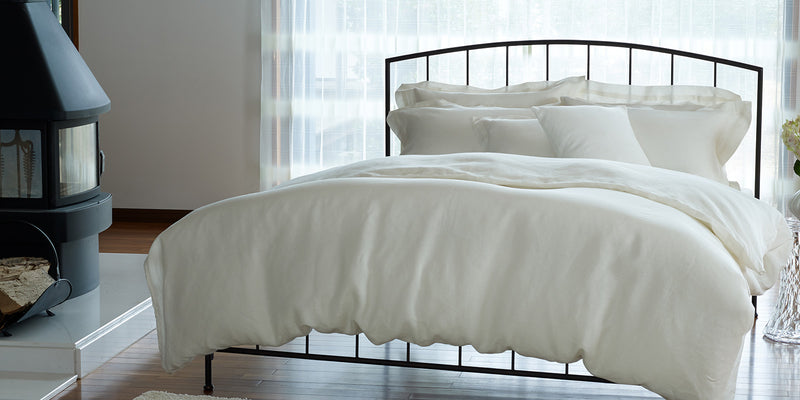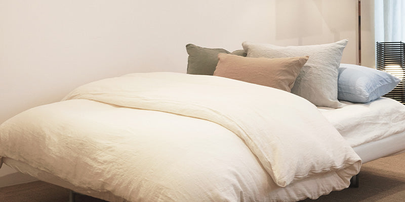 リネン素材のコーディネートで統一感のある寝室をお楽しみください。