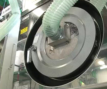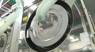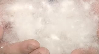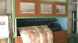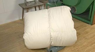 もう一度除塵機にかけます。洗いやパワーアップの工程に耐えられなかった羽毛を最後に取り除き、ふわふわの羽毛に仕上げます。徹底的に羽毛を磨くことでお布団に仕立て直したときに違いがでます。