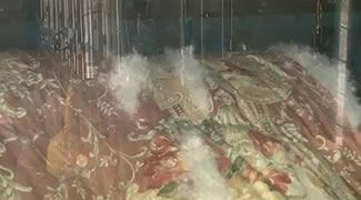 一枚分を洗浄できる専用洗浄機で、富士山系の地下水を使って羽毛を丸洗いします。